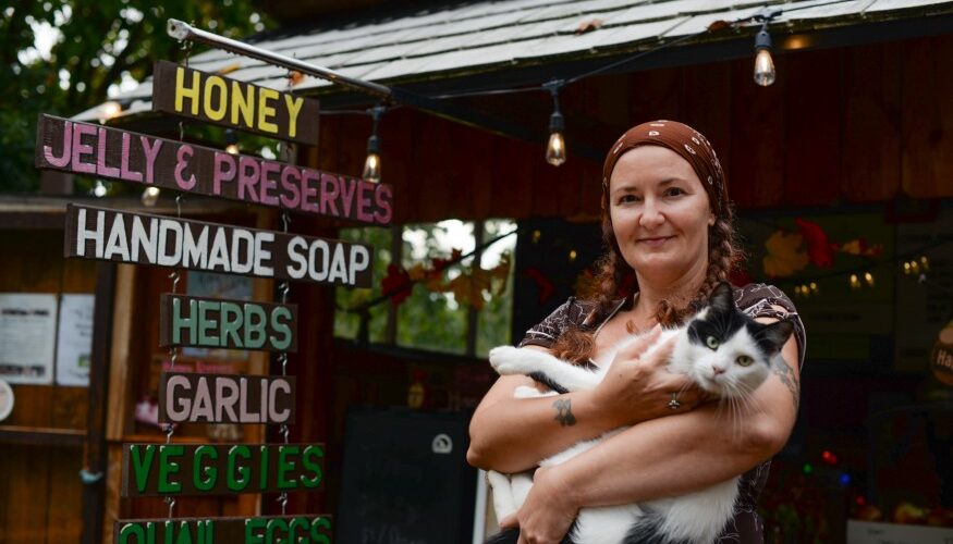 You can almost always find honey, eggs (chicken, duck, or quail), and firewood at the farmstand. When available, other items include produce, flowers, homemade soap, goat milk fudge, birdseed, and handmade cat toys. The stand is open year-round, although there is a limited selection of products in the winter due to lower temperatures which can cause certain items, such as honey, to freeze. However, Jacobs can set out items at the stand if customers text or message her on social media.